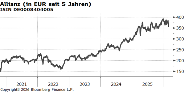 (1) Allianz-Einzelempfehlung von Kepler Cheuvreux, veröffentlicht am 27.02.2026, Votum: Kaufen, Kursziel 426,75 EUR. Die erstmalige Weitergabe durch die Haspa erfolgte am 02.03.2026 um 12:00 Uhr. Die weiteren gesetzlichen Pflichtangaben finden Sie hier.