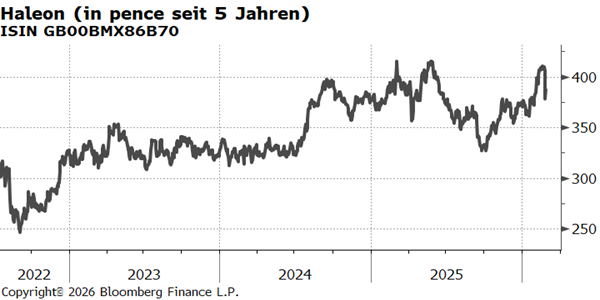 (1) Haleon-Einzelempfehlung von Kepler Cheuvreux, veröffentlicht am 25.02.2026, Votum: Kaufen, Kursziel 430 pence. Die erstmalige Weitergabe durch die Haspa erfolgte am 26.02.2026 um 10:00 Uhr. Die weiteren gesetzlichen Pflichtangaben finden Sie hier.
