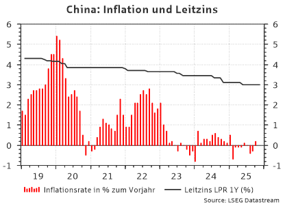 China sieht sich nach wie vor einem deutlichen deflationären Druck ausgesetzt. Zwar stieg die Inflationsrate im Oktober dank einer stärkeren Nachfrage über die Feiertage etwas stärker an als vom Markt erwartet. Das Damoklesschwert der Deflation hängt jedoch weiterhin über dem Reich der Mitte.