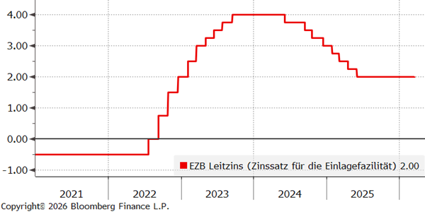 Bei der EZB-Sitzung in der kommenden Woche wird der Iran-Konflikt das bestimmende Thema sein. Auch wenn im April keine Anpassung des Leitzinses erwartet wird, ist diese Notenbanksitzung von großer Bedeutung. Die Ausführungen von EZB-Präsidentin Christine Lagarde in der Pressekonferenz werden genauestens auf Hinweise zur zukünftigen Ausrichtung der Geldpolitik der EZB analysiert werden. Unsere Einschätzung des Weiteren geldpolitischen Vorgehens der EZB finden Sie in unserer Frühjahrsprognose.