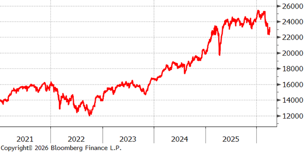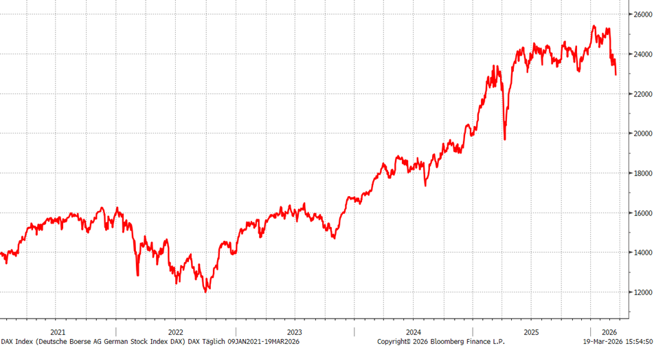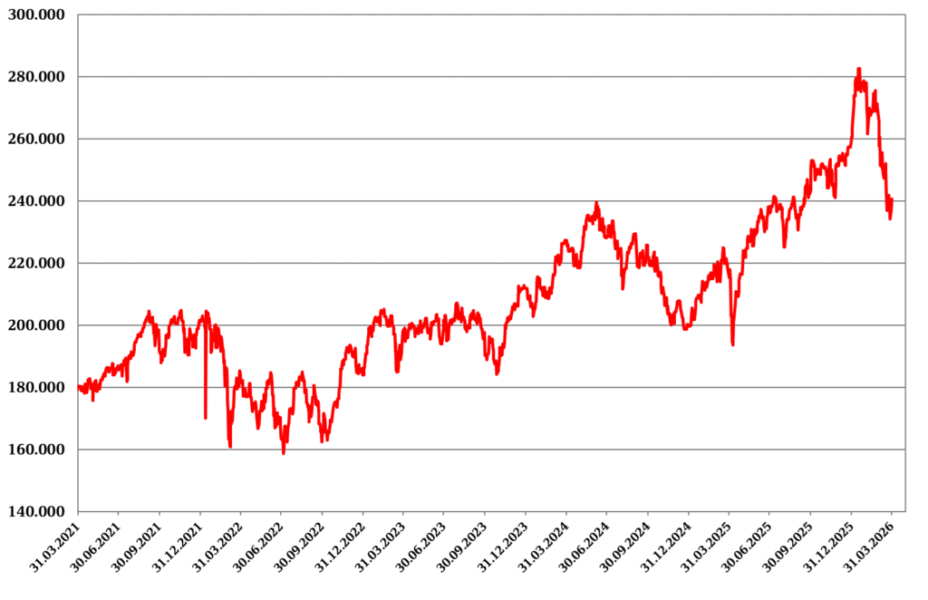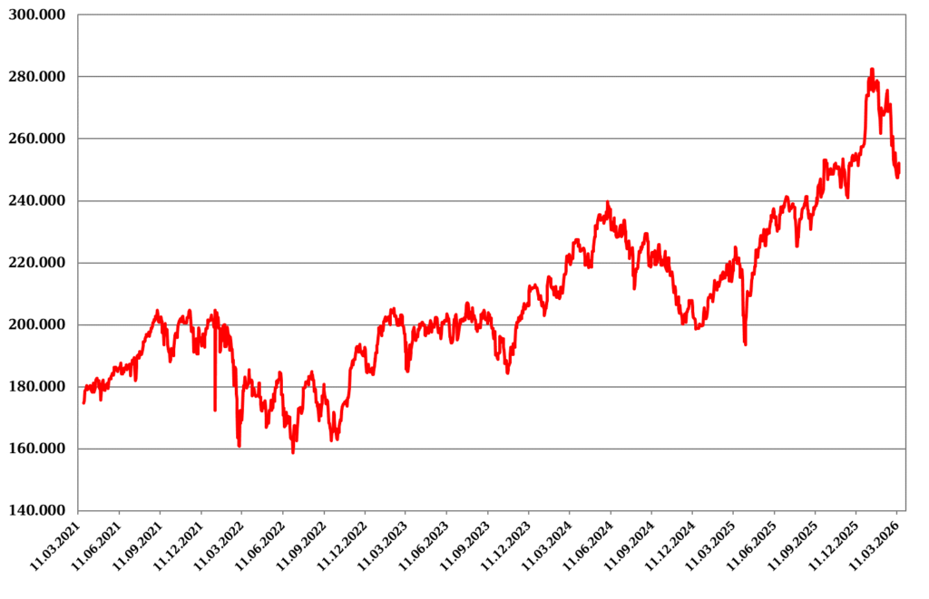 Wertentwicklung Deutscher Aktienindex seit 5 Jahren: