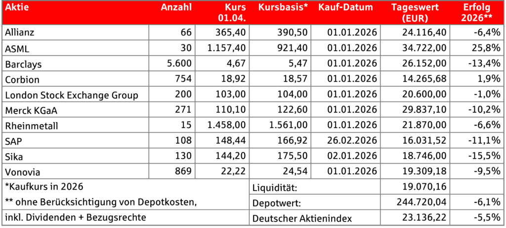 Die Zusammensetzung des Portfolios bleibt vorerst unverändert.