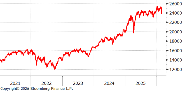 Wertentwicklung Deutscher Aktienindex seit 5 Jahren: