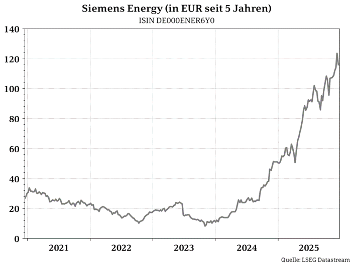 (1) Siemens Energy-Einzelempfehlung von Kepler Cheuvreux, veröffentlicht am 17.12.2025, Votum: Kaufen, Kursziel 140,00 EUR. Die erstmalige Weitergabe durch die Haspa erfolgte am 18.12.2025 um 10:00 Uhr. Die weiteren gesetzlichen Pflichtangaben finden Sie hier.